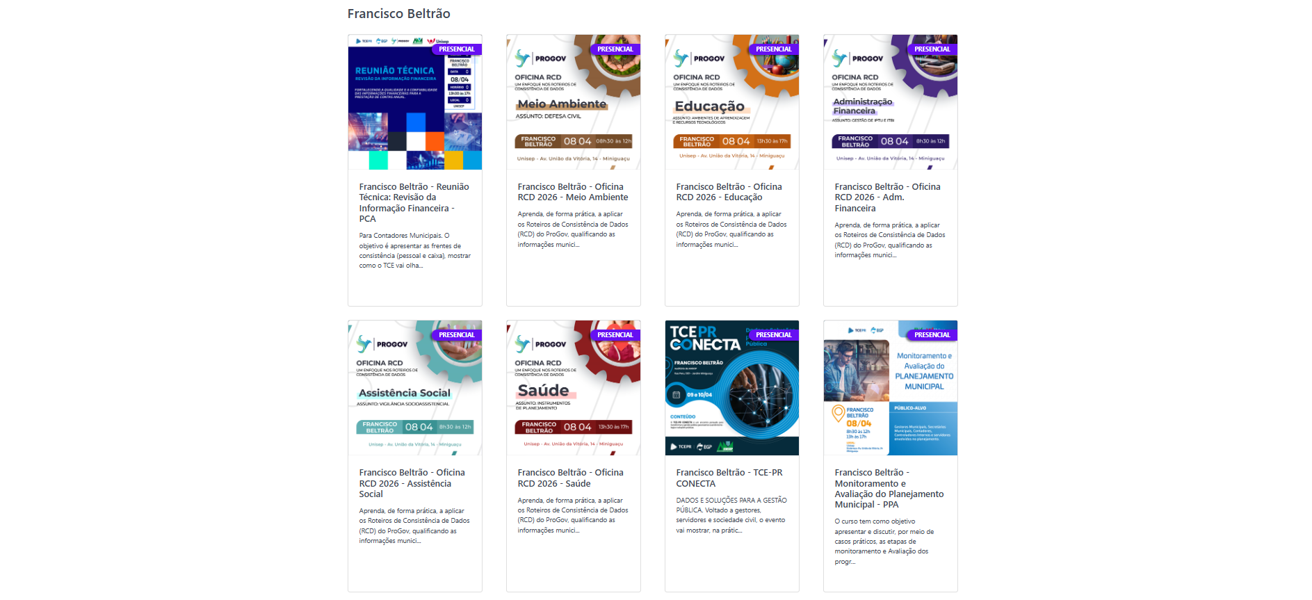 Capacitações do TCE-PR em Francisco Beltrão, entre 8 e 10 de abril, estão com inscrições abertasBaixar ArquivoLegendaCapacitações do TCE-PR em Francisco Beltrão, entre 8 e 10 de abril, estão com inscrições abertasCréditosDivulgação/TCE-PR