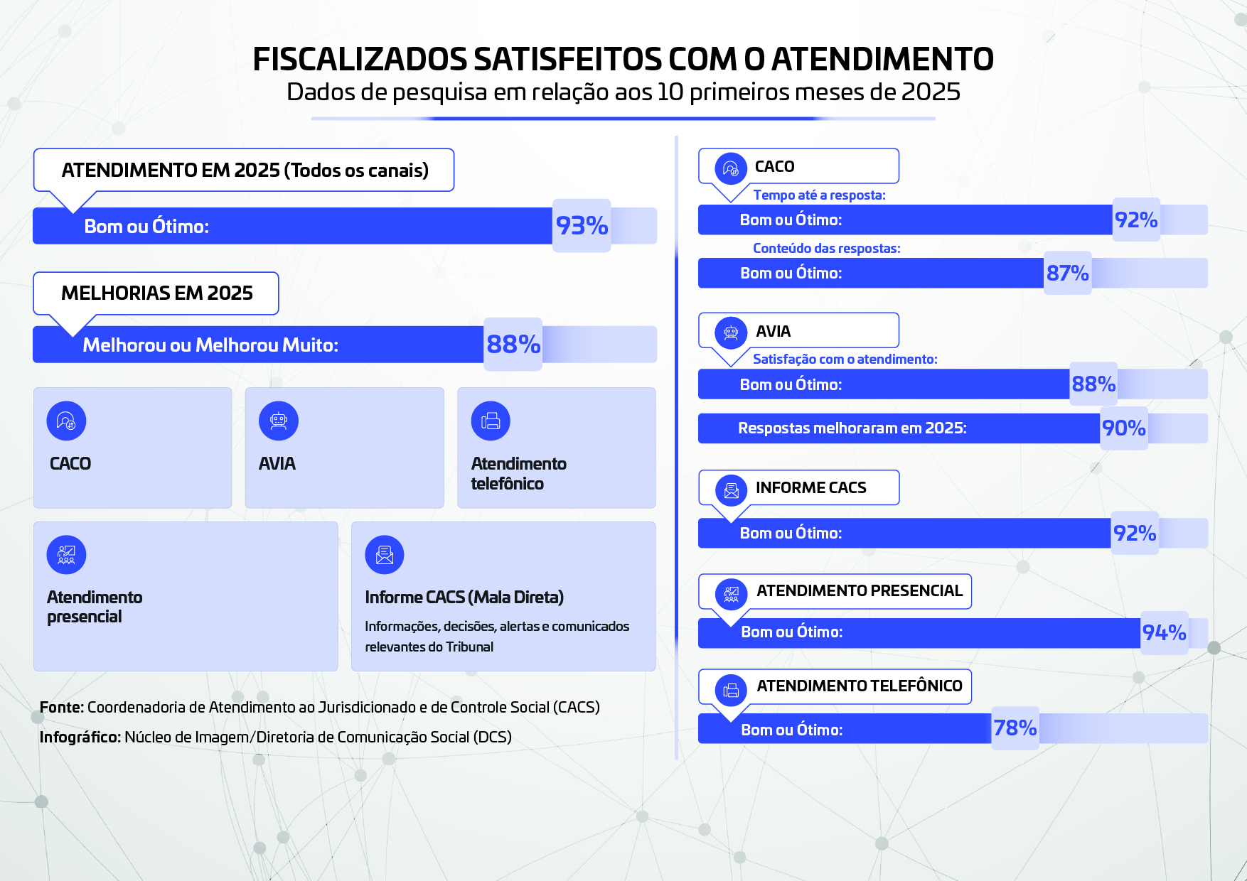 Infográfico - Pesquisa de satisfação 2025 sobre o atendimento ao fiscalizado do TCE-PRBaixar ArquivoLegendaInfográfico - Pesquisa de satisfação 2025 sobre o atendimento ao fiscalizado do TCE-PRCréditosNúcleo de Imagem/TCE-PR