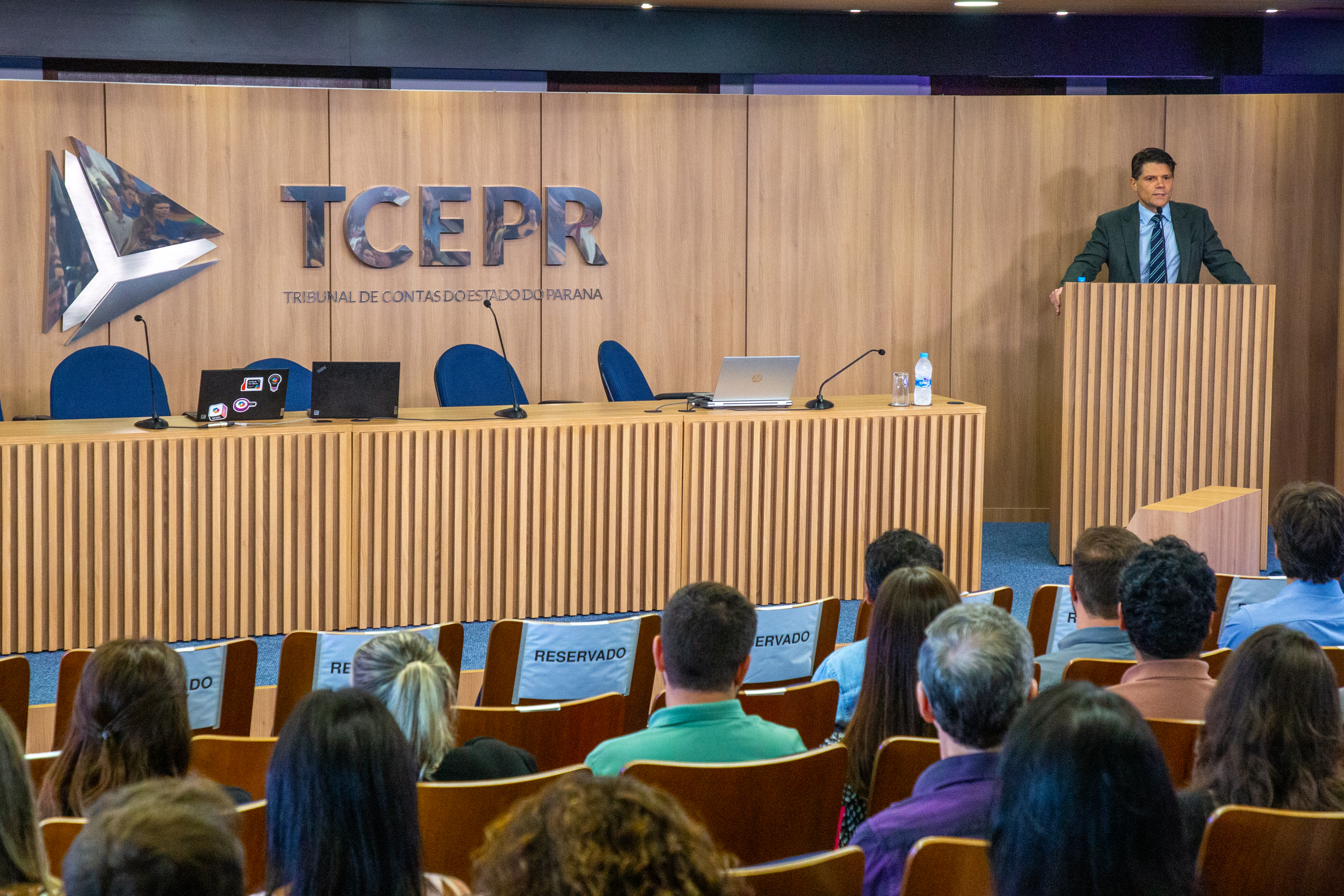 O presidente do TCE-PR, conselheiro Ivens Linhares, discursa no auditório da Corte em evento sobre IABaixar ArquivoLegendaO presidente do TCE-PR, conselheiro Ivens Linhares, discursa no auditório da Corte em evento sobre IACréditosMauro Penteado/TCE-PR