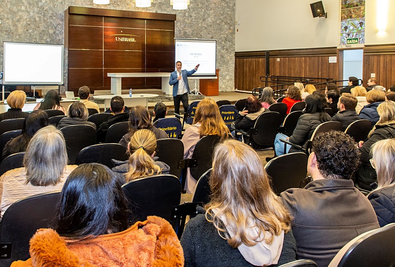 A abertura da capacitação, nesta terça (26), às 8h, no UniBrasil, teve a participação do titular da Segunda Inspetoria de Controle Externo do TCE-PR, Carlos Eduardo de Moura (instrutor do curso), e do servidor daquela unidade Joélcio Luiz Kloss.